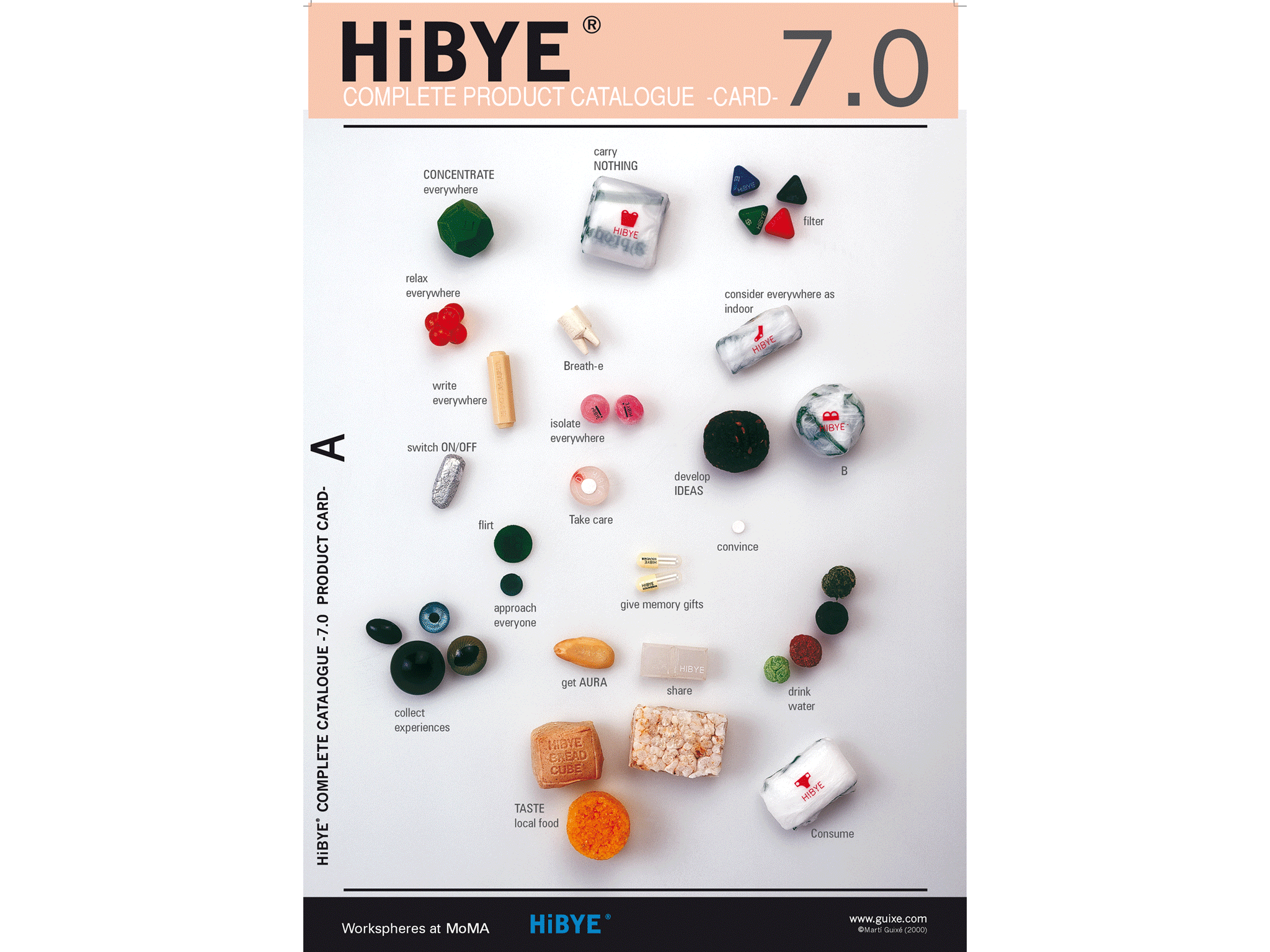 HiBYE originated from a commission by curator Paola Antonelli for the exhibition Workspheres, inaugurated at the Museum of Modern Art, New York, on February 8, 2001. The proposal consisted of conceiving a technological object for nomadic workers, at a moment when mobility was beginning to be redefined through emerging digital technologies.