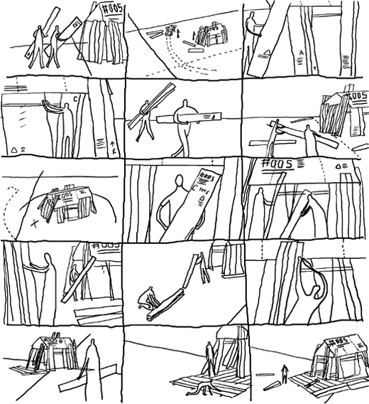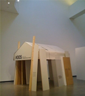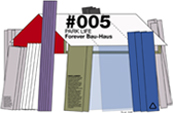 Park Life #005 Forever Bau-Haus | in the collective exhibit Nullpunkt. Nieuwe German Gestaltung | 2008 | Small house with a Tetra pak roof, and movable walls made of different panel elements of different materials. You play with the house continuously by maintaining, cleaning, moving, placing and replacing these panels, configuring a new house each time. ![]() ![]()