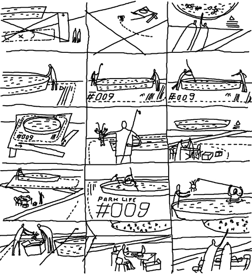 Park Life #009 The Shellfish Kitchen-Building | presented in Context Free exhibition | MUDAC Lausanne | 2003 | A transparent saltwater tank on a platform enables you to watch the shellfish from below. The sea crustaceans and molluscs in this shellfish farm can be caught from outside or from within the tank itself. ![]()